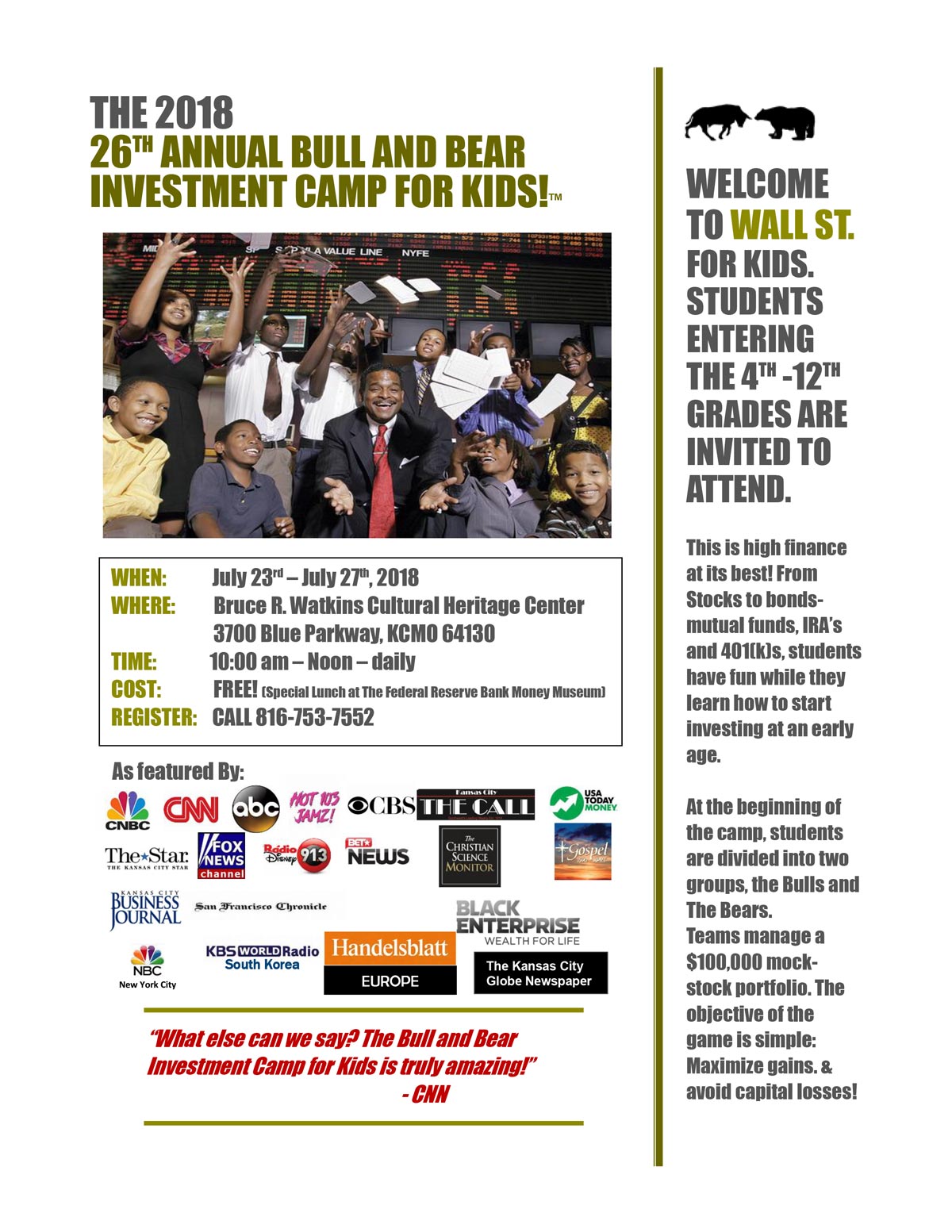 The 2018 26th Annual Bull and Bear Investment Camp for Kids!
